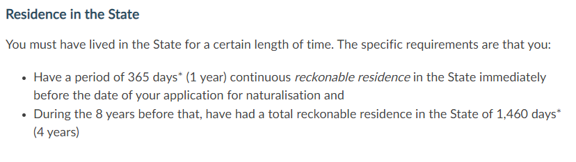 原规定:申请人需要在提交入籍申请之前的8年内有4年(1460天)的时间居住在爱尔兰。