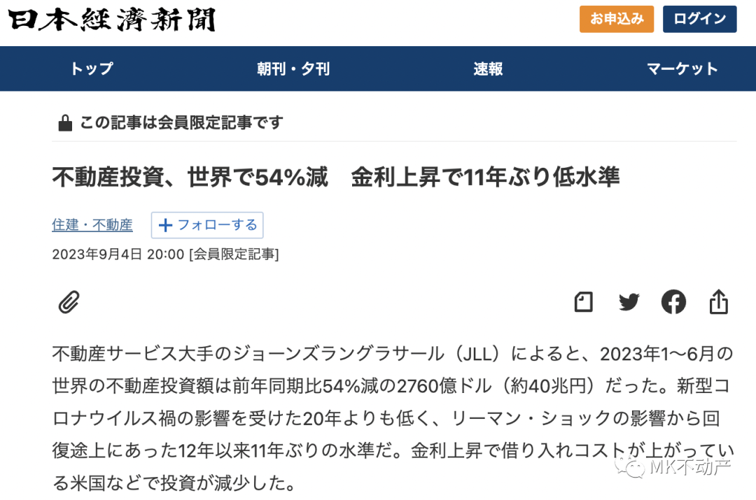 全球房地产投资下滑,日本房产却一枝独秀,投资额强劲增长52%!