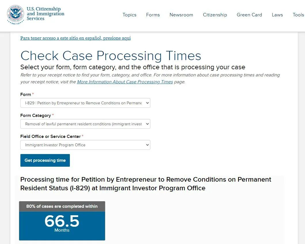 这意味着,移民局处理完80%的中国大陆出生投资人I-829申请耗费的时间为66.5个月(约5年)。