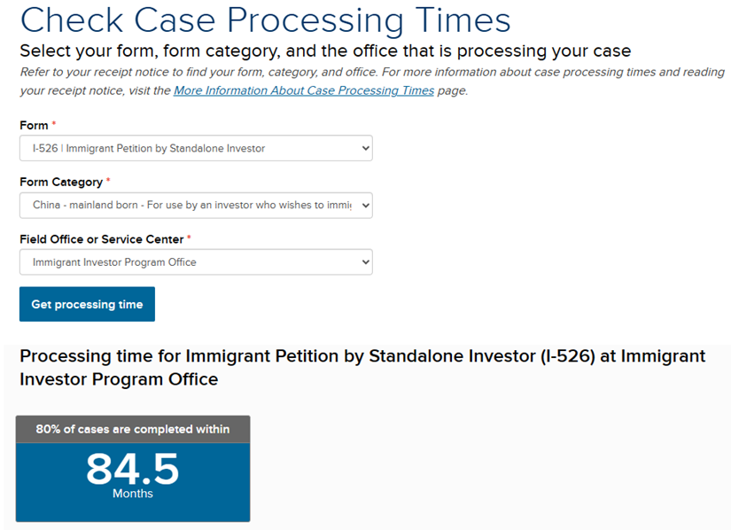 这意味着,移民局处理完80%的中国大陆出生投资人I-526申请耗费的时间为84.5个月(约7年)。