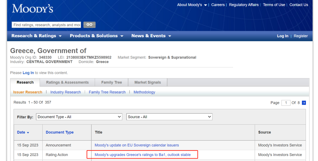 连升两级 | 穆迪上调希腊信用评级至Ba1,前景展望稳定!