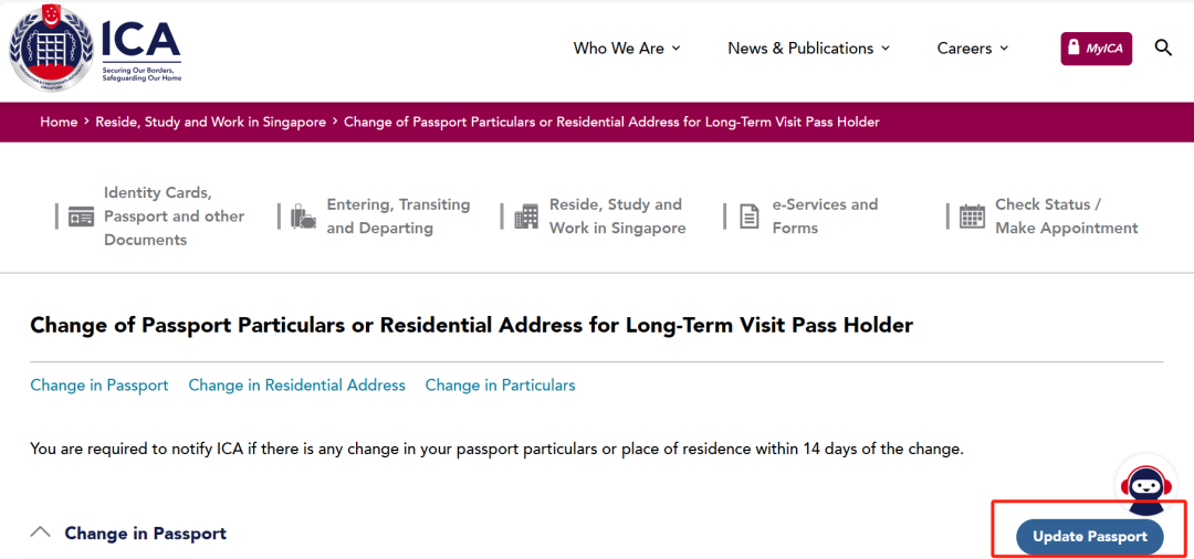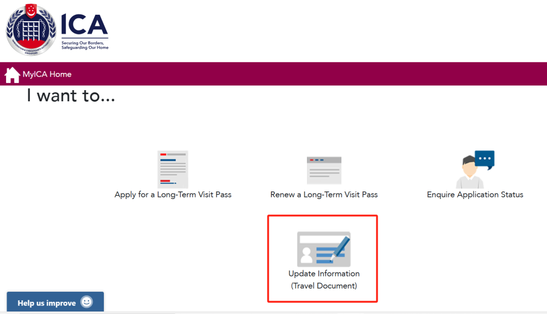 1. 在移民与关卡局(ICA)官网更新(步骤同上)