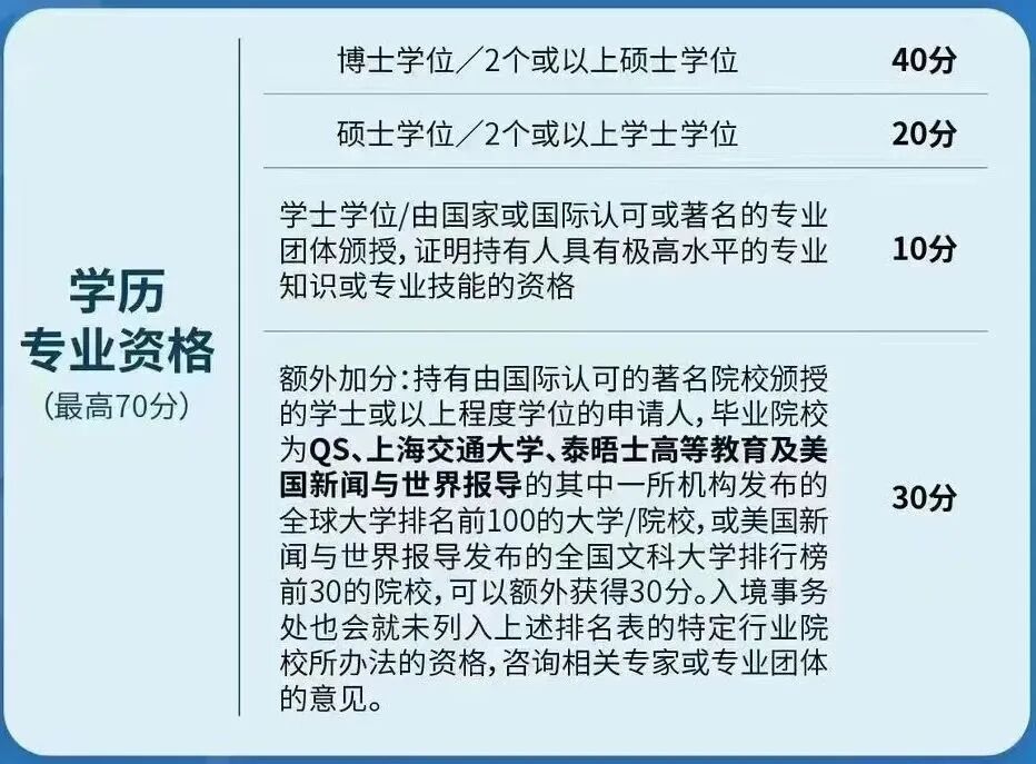 6、2023年,新增了名企可以额外加20分:不少于3 年的跨国公司或知名企业的工作经验,如上市公司或位列《福布斯》全球企业 2000 强、《财富》世界 500 强和胡润中国 500 强企业,可以多加20分。