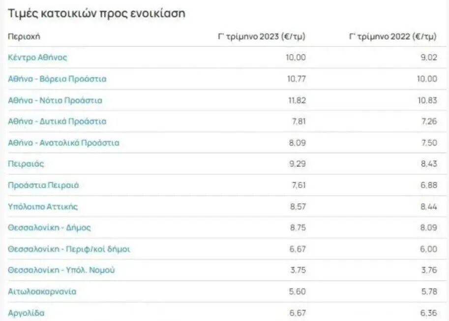 雅典南郊房屋仍牢牢地占据着“租金第一”的宝座,每平方米平均租金价格为11.82欧元,这个数字在一年前为10.83欧元。
