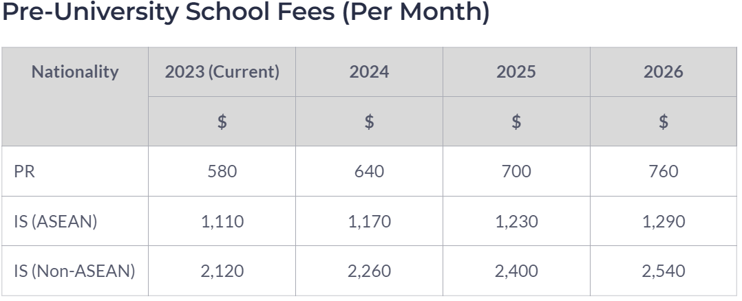 未来三年,PR学生的每月学费将每年增加25至60新币,IS学生(包括ASEAN东盟国际学生及Non-ASEAN非东盟国际学生)的每月学费将每年增加25至140新币。修订后的费用将从每年一月起生效。2024年至2026年PR和IS的修订学费可以参阅下表。