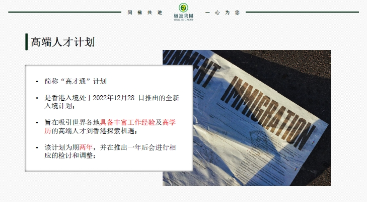 香港高端人才通行证,简称“香港高才通计划”,是香港政府于2022年年底推出的一项人才引进计划。旨在吸引世界各地具备丰富工作经验及高学历的高端人才到香港探索机遇,高端人才包括高收入人士和世界顶尖大学的毕业生。