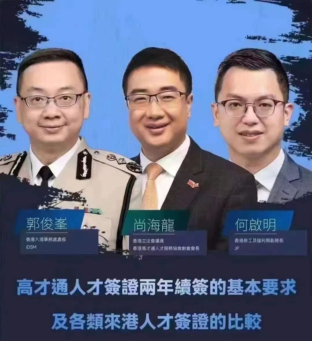 1月27日晚,香港入境事务处处长郭俊峯、香港劳工及福利局副局长何启明、香港高才通人才服务协会创会会长尚海龙等政府官员就目前最火爆的高才通计划两年后续签的基本要求及各项来港签证对比做出了详细解答。