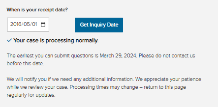 如果你的优先日在2016年5月,审批进度“正常”,要过一周才能联系移民局敦促审案。随着新财年表B跃进,也许接下来几个月里能看到中国的审批时长得以缩短。