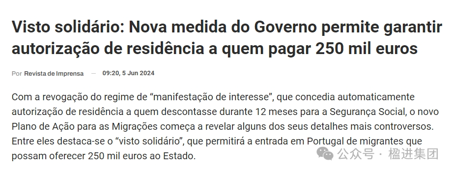 2024年6月5日据葡萄牙新闻媒体报道,葡萄牙新任政府揭晓了一项激动人心的《移民行动计划》,其中尤为引人注目的是一个全新的“融入”黄金签证(Visto Solidário)计划。这一创新的签证模式不仅体现了葡萄牙在移民政策上的前瞻性和灵活性,更是葡萄牙作为欧洲门户的独特优势的完美展现。