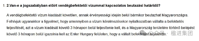 请注意,若您在申请签证时承诺进行投资,您需在签证签发后的三个月内完成投资,并在入境匈牙利后的三个月内,在 Enter Hungary 平台上证明您已履行了投资承诺。