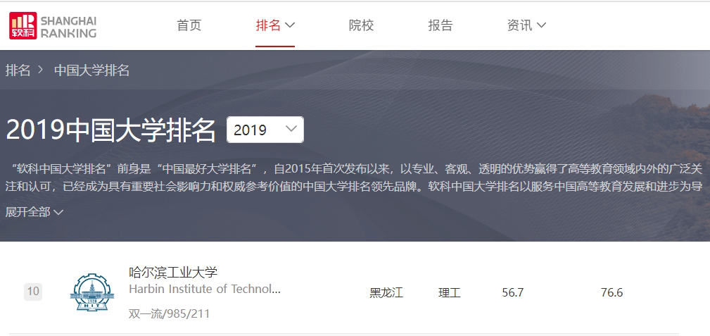 哈尔滨工业大学被香港政府列为“高才通计划”名单,原因就是,哈尔滨工业大学被评为2019中国大学排名第十。