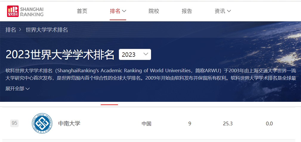 中南大学今年虽然只排在第二十五位,但2023年的排名,却是全球排名前一百的。算五年,还来得及~