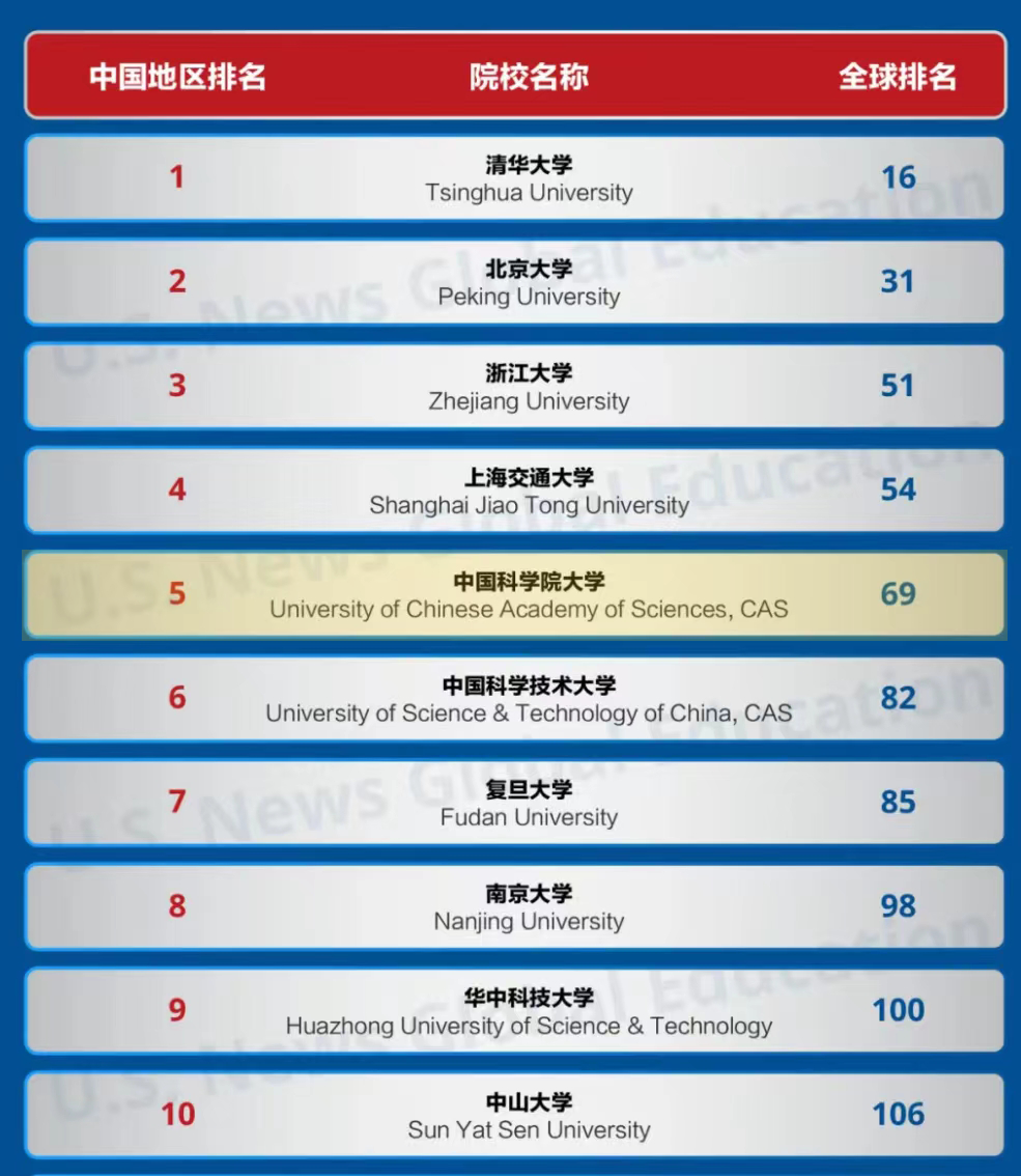 中国科学院大学,第一次进入了四大全球大学榜单的前一百名!