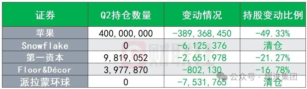 (伯克希尔Q2前5大减持股票,图源:财联社)