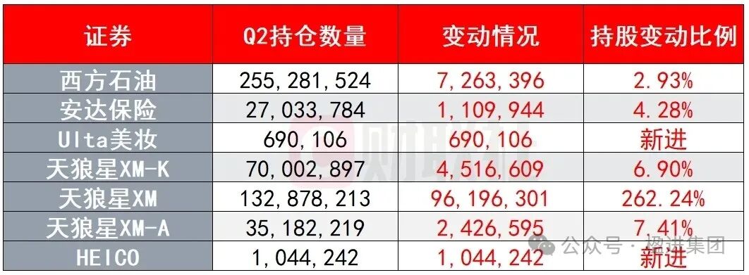 在增持方面,巴菲特在第二季度继续增持西方石油,同时首次公开的“神秘持仓”——安达保险也继续获得增持。之前被财经媒体多次报道的套利交易标的天狼星XM(Sirius XM)也继续获得增持。