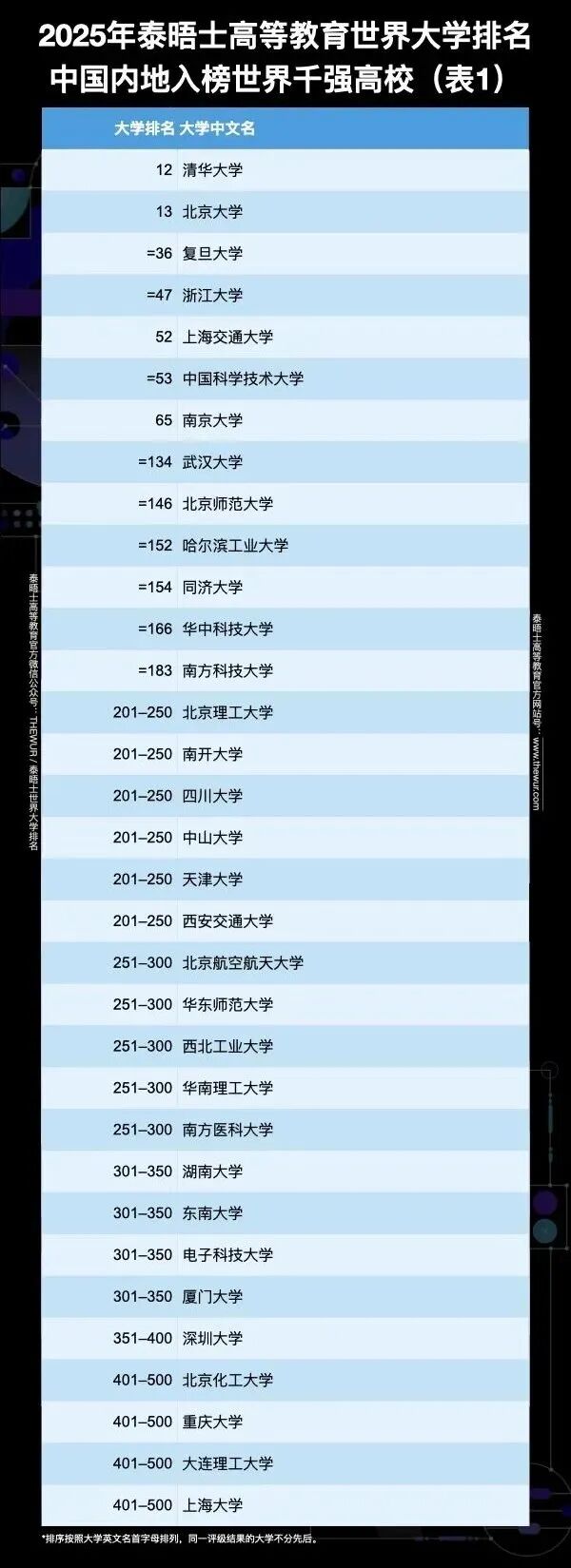 近日,国际著名大学排名机构泰晤士高等教育,发布了2025年泰晤士高等教育(THE)世界大学排名。我们一起来看一下!