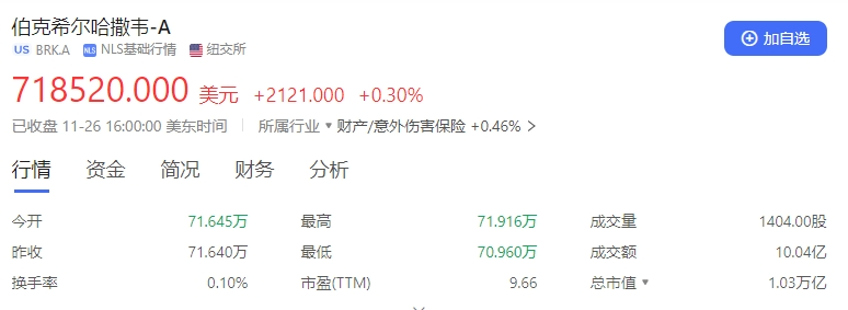 依据周一伯克希尔A类股票71.85万美元的开盘价位,今年这笔捐赠的总估值已接近11.5亿美元的大关。