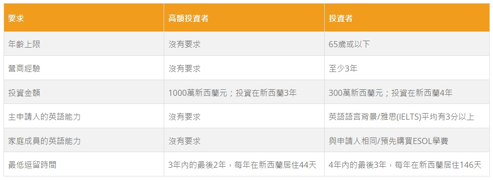 新西兰投资移民申请条件