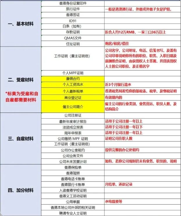 香港优才续签材料清单