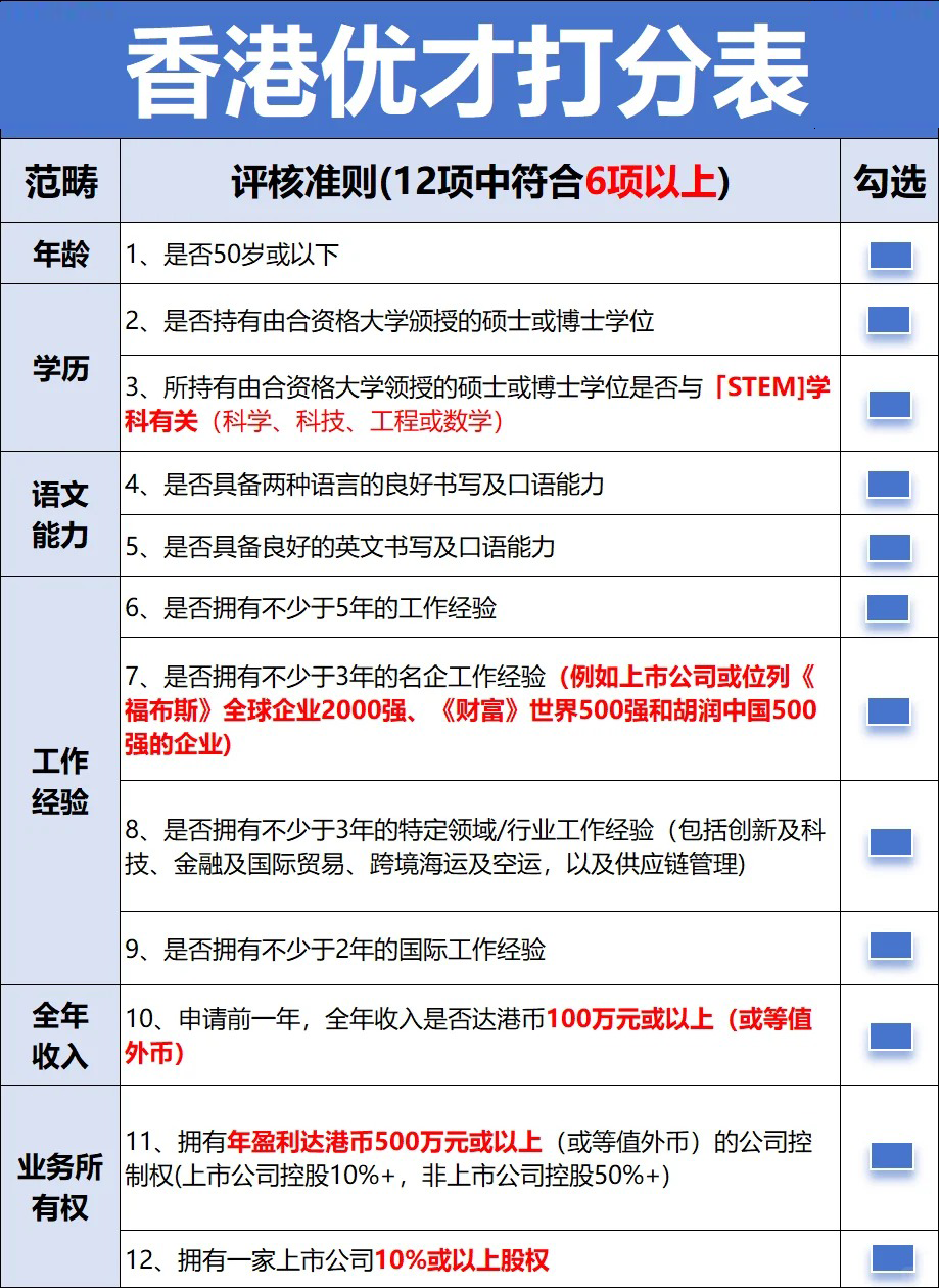 香港优才打分表