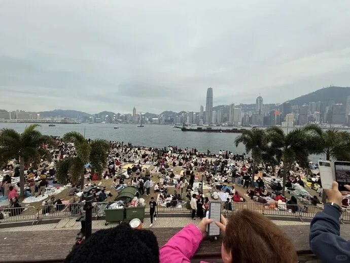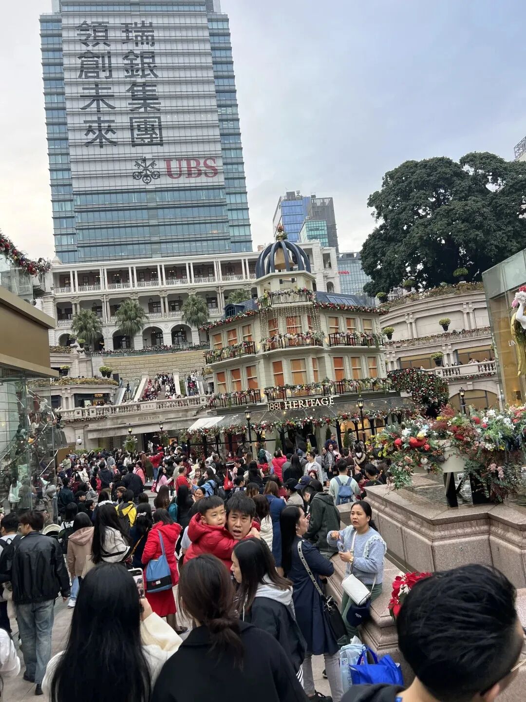 位于尖沙咀的海港城也被人流填满,现场人山人海,给人一种节日氛围的强烈感受。
