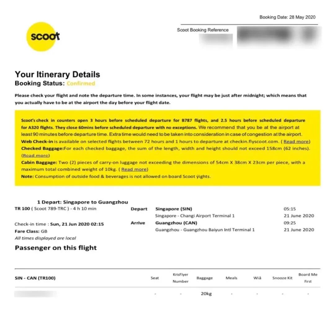 ?注:本文为【小编的朋友——老麦】的真实回国流程。他也是长期在新加坡生活,然后近期决定回国的一员。老麦的航班为6月21号从新加坡飞广州的酷航,其他入境城市或航班可能会有所不同,下面的流程仅供大家参考。