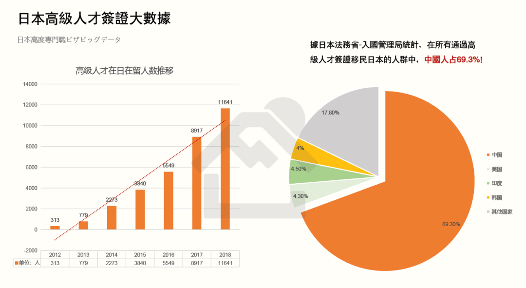 据日本法务省-入国管理局统计,在所有通过高级人才签证移民日本的人群中,中国人占69.3!