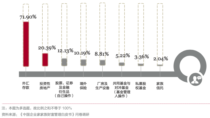 根据中国银行私人银行发布《中国企业家家族财富管理白皮书》显示,中国企业家们有一定的境外资产配置意识,但在投资标的选择上更优先看重外汇与房产。