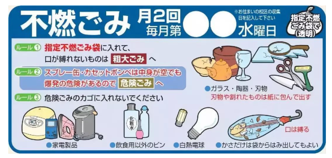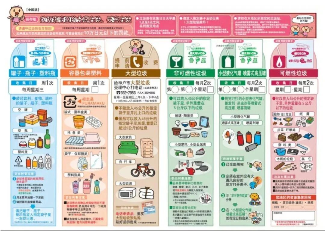 日本各式垃圾分类宣传单以及分类垃圾放置设备