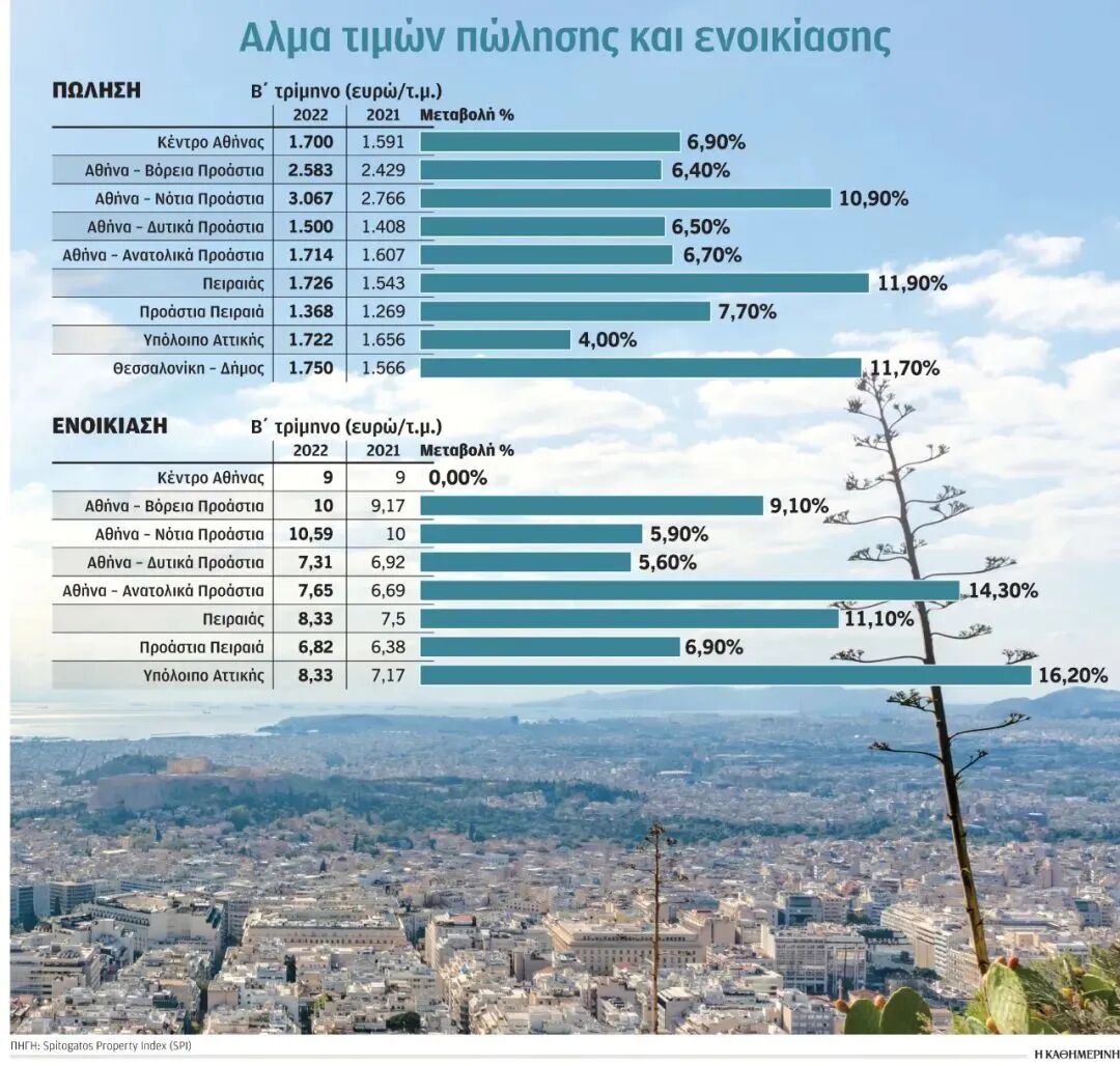 英国央行BoE也对希腊房地产市场进行了分析——希腊房产价值上涨的势头、流动性和开发商的项目都将会在2022年继续保持,甚至更高。根据2022年第二季度的SPI(Spitogatos房产指数)数据,整个阿提卡区域的平均销售价格同比增长了7.6%。在今年第一季度,相应的平均价格增幅为7.3%。