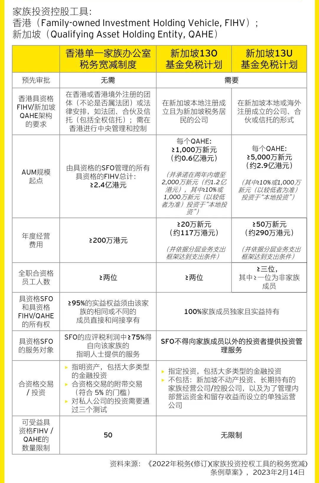 2023年3月24日,香港政府发表了《有关香港发展家族办公室业务的政策宣言》,就建立全球家族办公室和资产拥有人的蓬勃生态圈,说明政策立场和措施,当中包括向为由具资格单一家族办公室(Single Family Office,SFO)在香港管理的具资格家族投资控权工具(Family-owned Investment Holding Vehicle, FIHV)提供专门的利得税税务宽减制度(税制草案)。《2022年税务(修订)(家族投资控权工具的税务宽减)条例草案》(条例草案)如果在香港立法会正式获得通过,将适用于2022年4月1日及之后开始的课税年度。