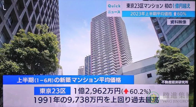 另外,2023年上半年东京23区和首都圈新建公寓的平均价格均创下历史最高值,其平均价格分别为1亿2,962万日元和8,873万日元。