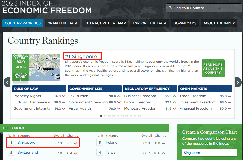 —新加坡:2023世界经济自由度报告连续三年竞争力全球第一