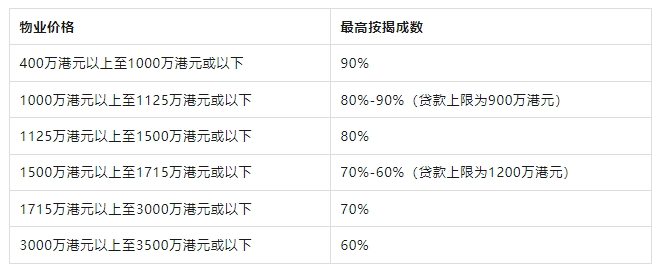 01、价值3,000万港元或以下的自用住宅物业的按揭成数上限调整至70%;价值3,500万港元或以上的自用住宅物业的按揭成数上限调整至60%。为了避免适用按揭成数出现骤降情况,价值3,000万至3,500万港元之间的物业的按揭比率会以渐进形式递减。此外,非自用住宅物业的按揭成数上限由50%调升至60%。