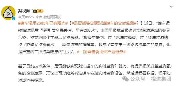 我们呼吁,监管部门应以此为契机,彻底整顿罐车运输市场,建立健全长效监管机制,确保每一滴流入市场的食用油都纯净无害。同时,也期待社会各界共同努力,提升食品安全意识,守护好我们舌尖上的安全。