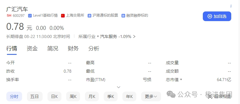 广汇汽车的市值也从高峰时期的超过1000亿元跌至不足65亿元,并且面临退市的风险。2024年7月21日,广汇汽车发布公告称,因连续20个交易日收盘价低于1元,公司股票及可转换公司债券已触及终止上市条件。广汇汽车的总负债高达692.54亿元,而账上货币资金仅为83.36亿元。