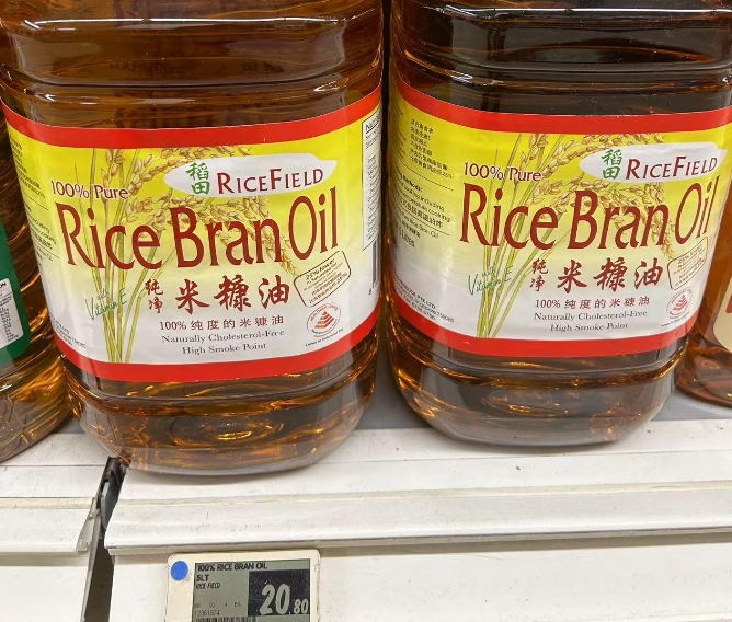 米糠油:一桶5升装的普通品牌米糠油售价114元(20.8新币)。