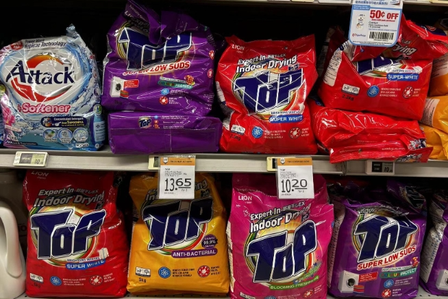 洗衣粉:两袋5公斤装的洗衣粉售价在56-75元(10.2-13.65新币)之间。