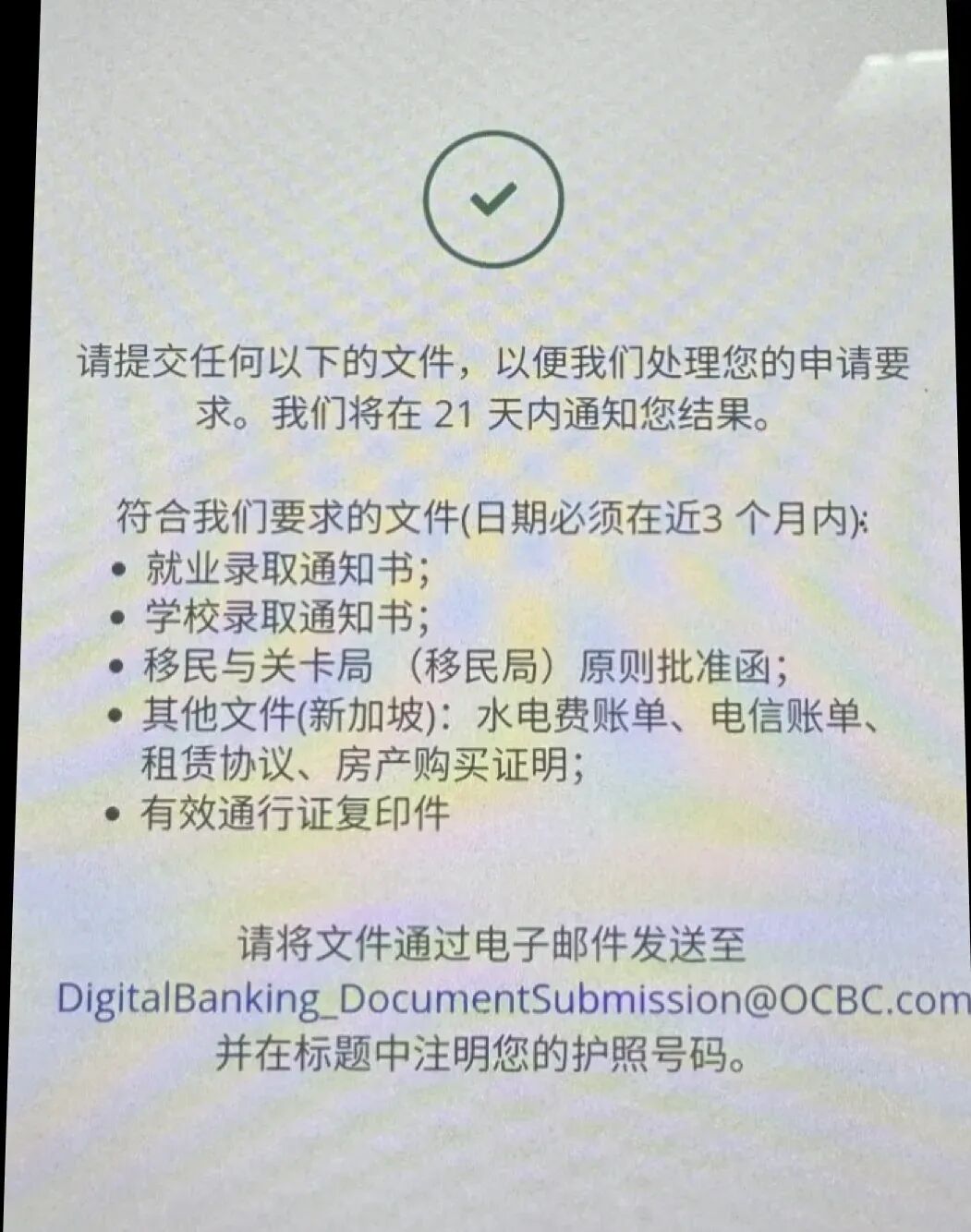 根据OCBC银行的最新通知,非新加坡永久居民现在申请开户将需要提供更多的附加文件。