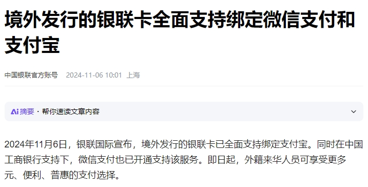 这一服务的推出无疑为外籍人员在中国境内的支付提供了更多便利。