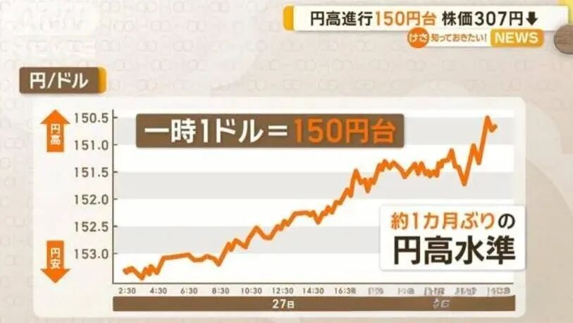 11月27日,在纽约外汇市场上,日元兑美元的汇率一度攀升至150.40日元附近,创下了近一个月以来的新高。