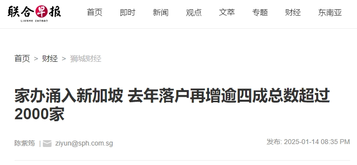 特别值得注意的是,获得新加坡金融管理局(金管局)颁发税务优惠的单一家办数目从2023年底的1400个迅速增加至2024年底的超过2000个,一年内增加了600个,增长率高达42.9%。